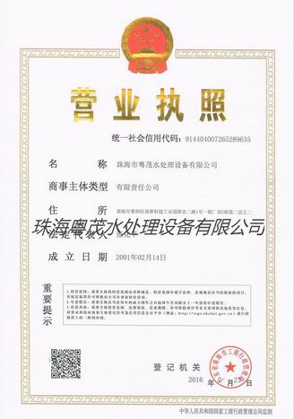 珠海市粵茂水處理設備有限公司 珠海粵茂25年的水處理設備設計、生產、安裝、調試、運營管理、維修改造一體的高新技術企業。公司主要生產反滲透純水設備、EDI超純水設備、去離子軟化水設備、海水淡化設備、中水回用設備、直飲水設備、冷卻循環水處理、變頻恒壓供水設備、工業污水處理工程等; 憑借粵茂25年的水處理專業的技術、一流的服務,合理的價格,得到合作的客戶的高度評價!  |